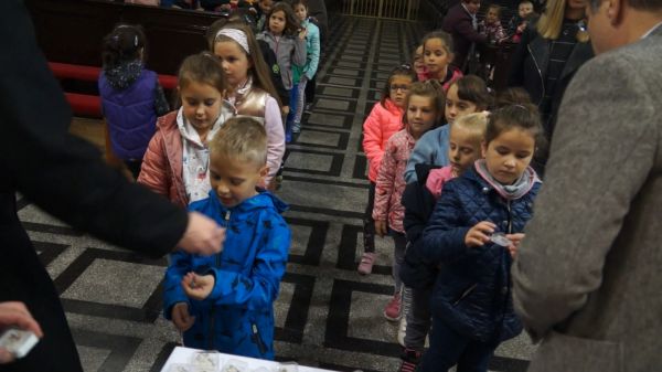 Rózsafüzért kaptak a katolikus iskolaközpont első osztályos diákjai